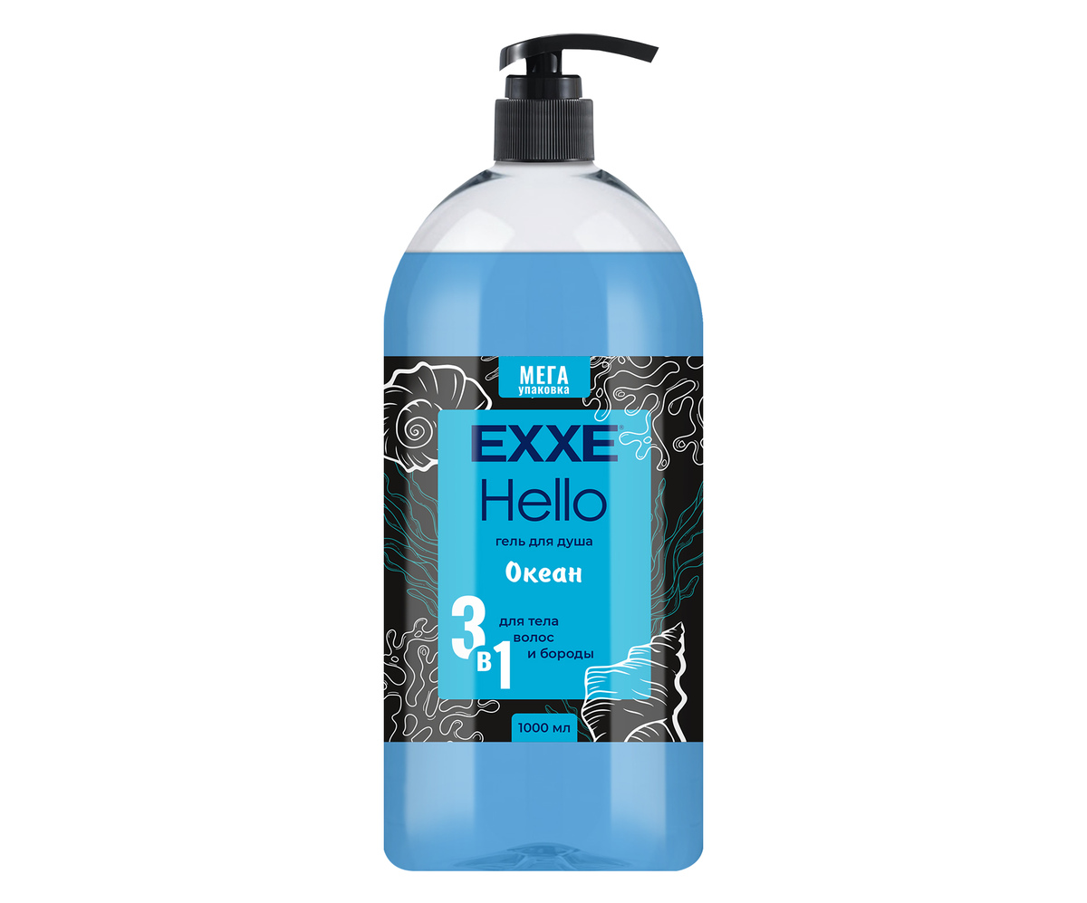 EXXE Hello Мужской гель для душа 3в1 "Океан", 1000 мл