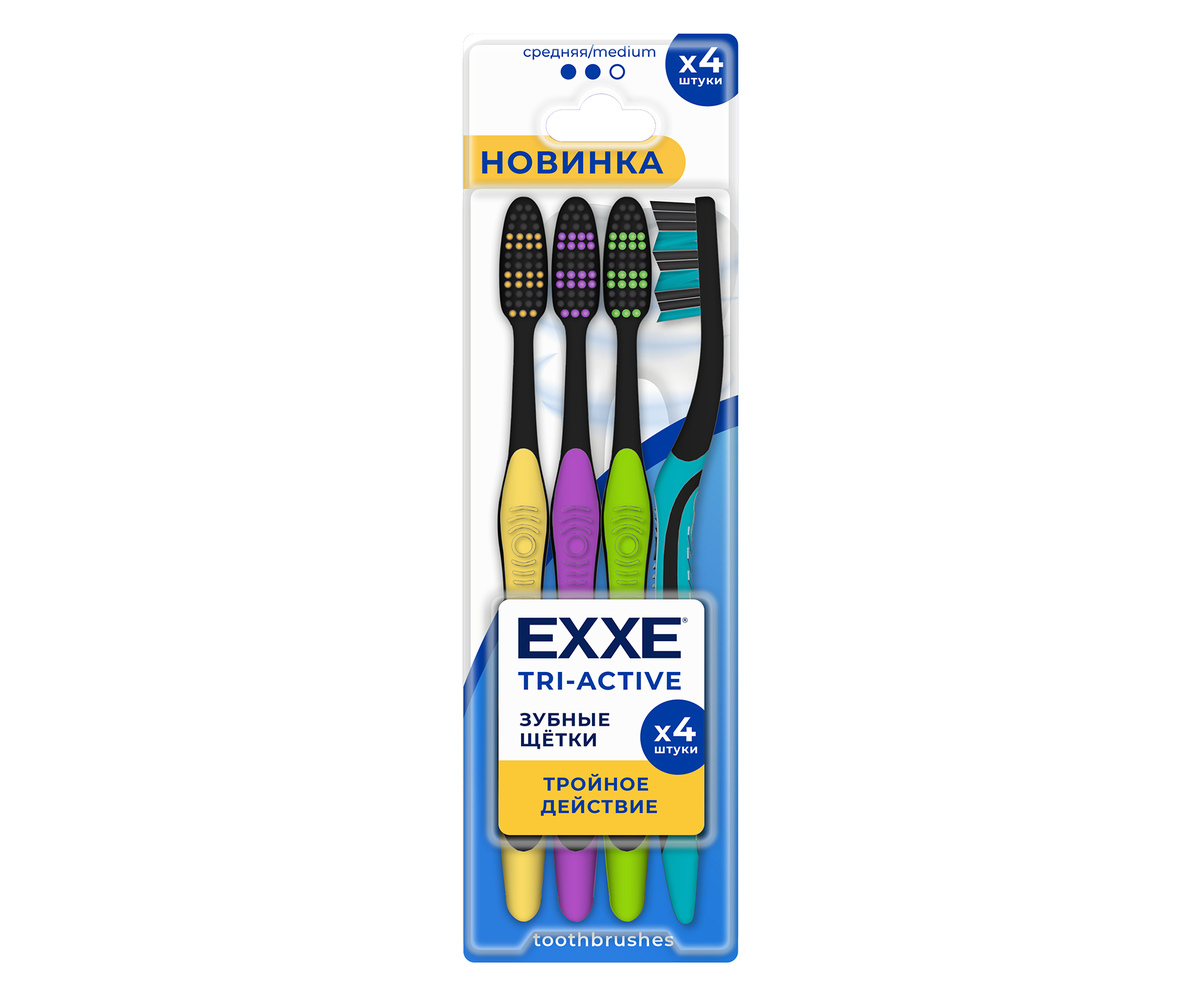 EXXE Зубная щетка tri-active МУЛЬТИПАК, 4 шт