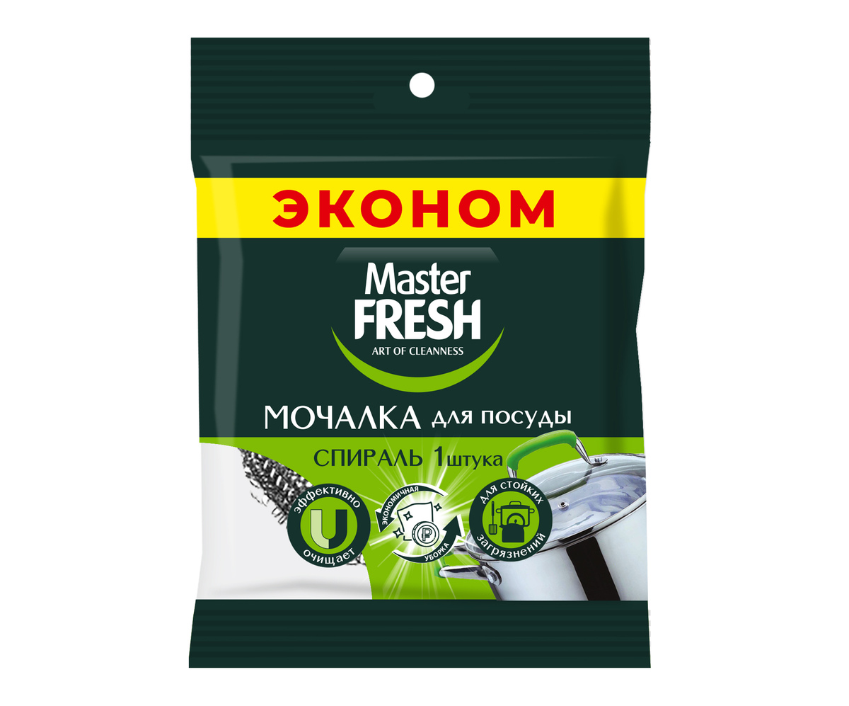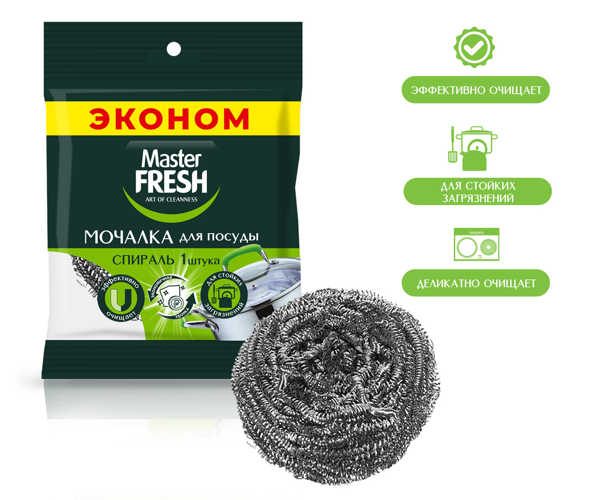 Master FRESH ЭКОНОМ Мочалка для посуды металлическая СПИРАЛЬ 1 штука Master FRESH металлическая мочалка д/посуды СПИРАЛЬ предназначена для удаления особо стойких загрязнений.