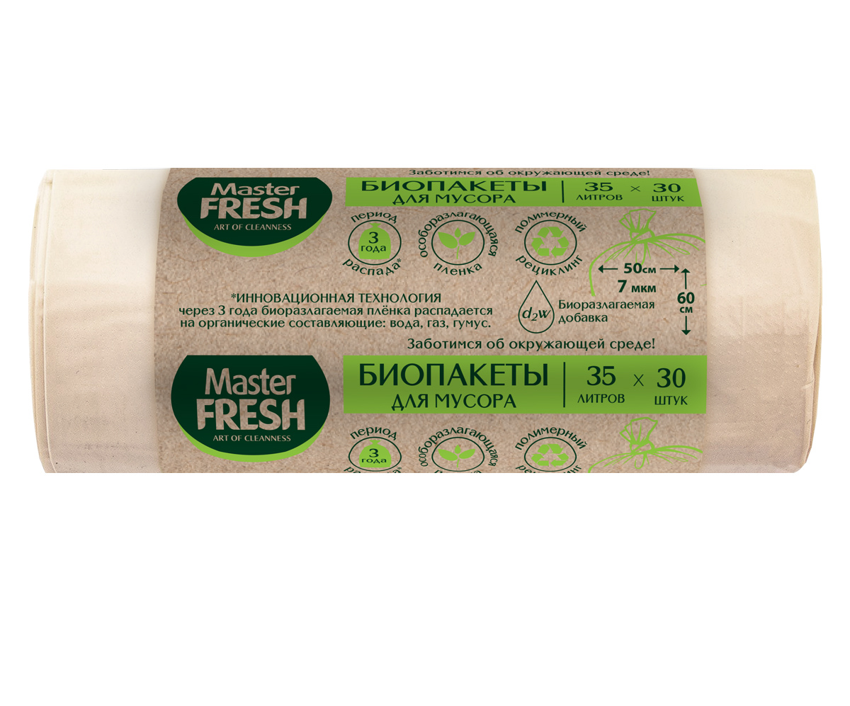 Master FRESH Пакеты для мусора Биоразлагаемые 7 мкм 35 литров 30 штук