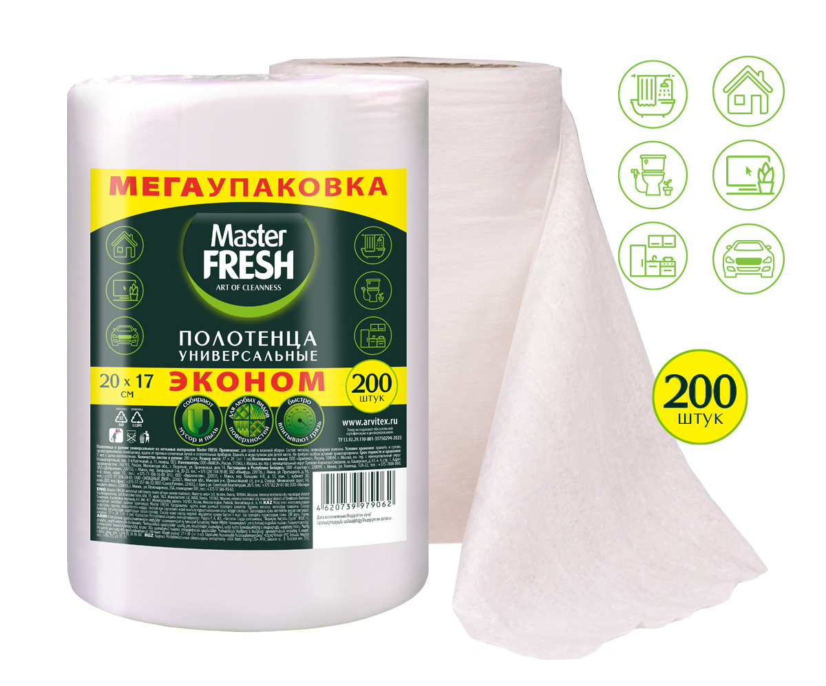 Master FRESH ЭКОНОМ УНИВЕРСАЛЬНЫЕ ПОЛОТЕНЦА в рулоне 20*17 см 200 штук