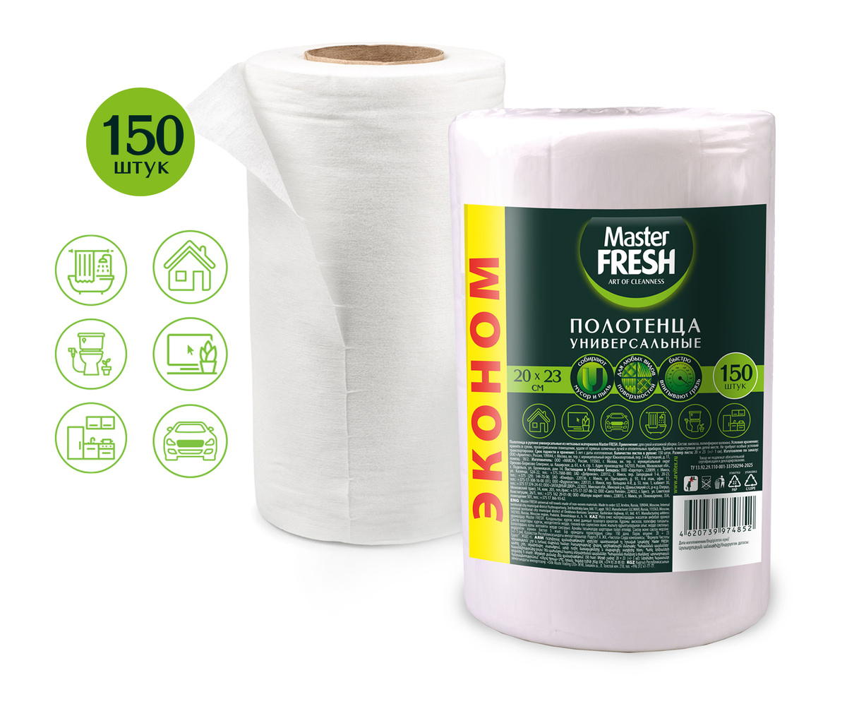 Master FRESH ЭКОНОМ УНИВЕРСАЛЬНЫЕ ПОЛОТЕНЦА в рулоне 20*23 см 150 штук